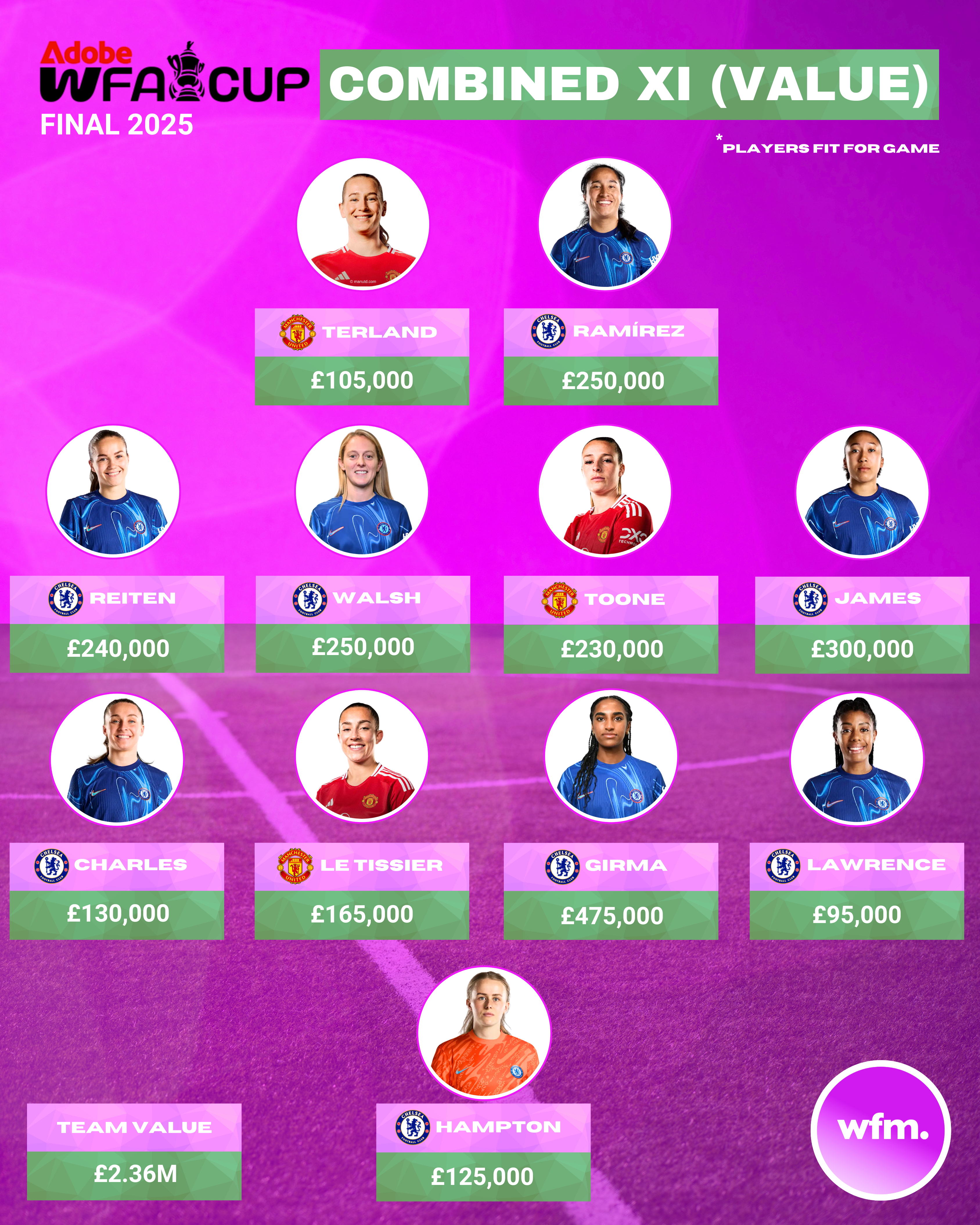 Our Adobe Women’s FA Cup Final 25’ Most Valued XI based on players available – a combined total of £2.36m and a tasty line-up indeed!