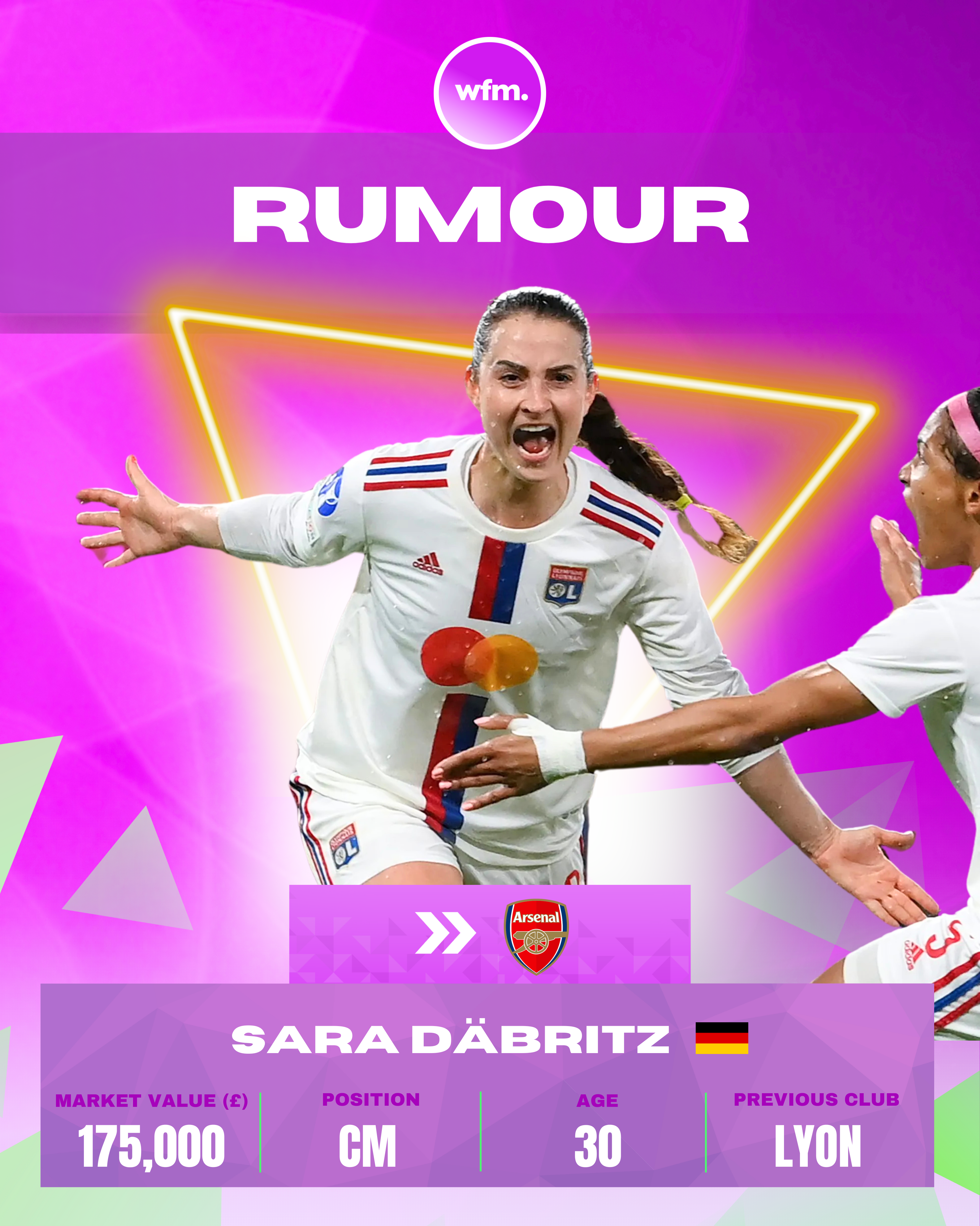 Sources suggest Arsenal are eyeing a move for free agent Sara Däbritz whose contract at Lyon recently expired.